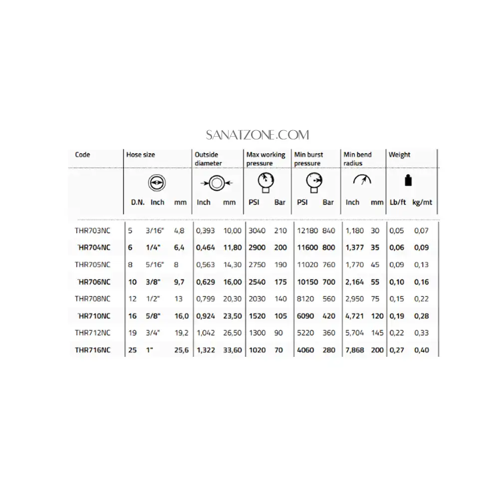 - قطر داخلی (ID): 9.7 میلیمتر (3/8 اینچ) — این اندازه، حجم سیال عبوری را تعیین کرده و برای کاربردهای هیدرولیک با دبی متوسط مناسب است.